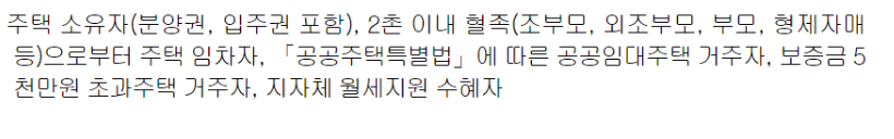 - 행복주택 등 공공임대 주택 입주자