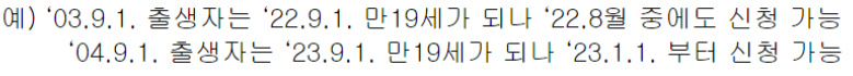 만일 만 19세가 아니더라도 다음 해인 2023년 1월 1일부터 신청 가능합니다.