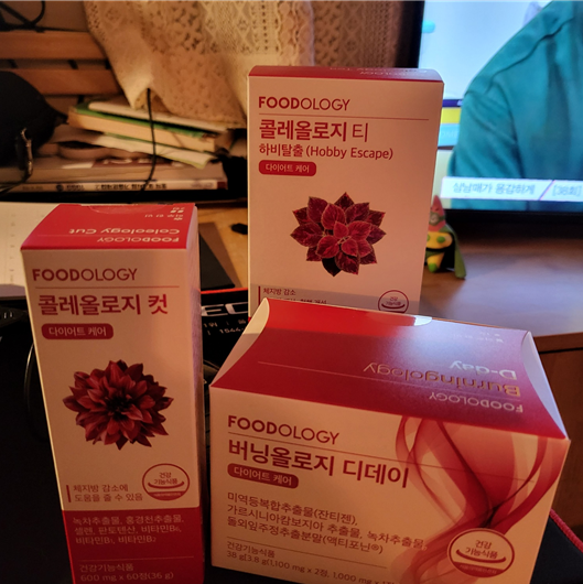 개인적으로 '콜레올로지 티'는 예전에 유행했던 허벌라이트 제품의 녹차추출물의 제품의 맛과 흡사했습니다. 500ml의 물에 한포를 섞어 마시는 것이며 석류향이 나지만 끝맛은 씁쓸한 맛이 납니다. 마시는 것만으로 디톡스 되는 느낌을 받았습니다. 아침에 눈뜨자마자 복용하는 것을 추천드리며 한 번에 마시려고 하면 부담이 되므로 천천히 생수대신 마시면 쉽게 복용할 수 있습니다. '콜레올로지 컷'은 자기 전에 2알 복용하는 것이 좋습니다. 잊어버리지 않게 침대 옆에 두었으며 실제로 자기 전에 매일 2알씩 복용하였습니다. 실질적인 효과보다는 푸드올로지가 추천하는 3개월 코스대로 복용하면서 체줌감량에 도움이 된 것으로 느껴집니다. 저는 갑상선 항진증을 겪고 있는 사람인데 푸드올로지 제품을 먹고 특별한 증상은 없었습니다. 한 번에 무리해서 먹으며 속이 울렁거림은 있었지만 그건 부작용으로 볼 수 없습니다. 아침 일찍부터 꾸준히 천천히 복용하시면 아무런 문제가 없으며 운동과 병행하면 체중감량에 더욱 효과를 볼 수 있습니다. 현재 환불 보장제를 실시하고 있으니 체중감량에 관심 있는 분들은 한 번쯤 복용해 보시는 것을 추천드립니다.