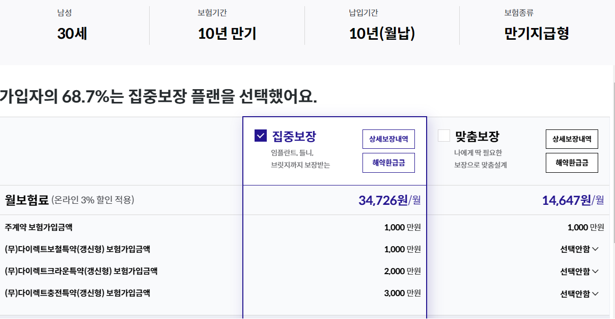 보험료 조회는 간단하니 본인이 받고 싶은 보장을 선택할 수 있어서 직접 조회해보시고 마음에 드는 보장을 선택하는 것이 가장 좋습니다.