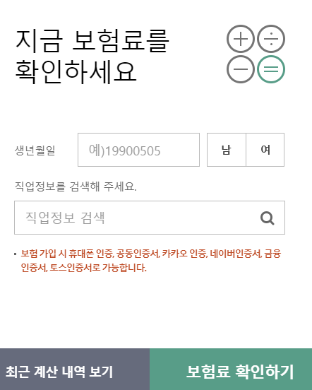 먼저 생년월일과 성별 그리고 직업정보를 입력해주시면 됩니다.