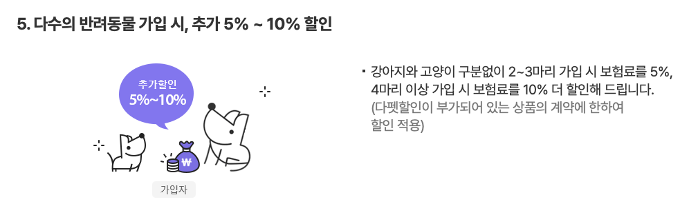 - 반려동물의 나이와 품종에 상관없이 가입할 수 있습니다. 단, 반려동물의 건강상태에 따라 가입이 제한될 수 있습니다.