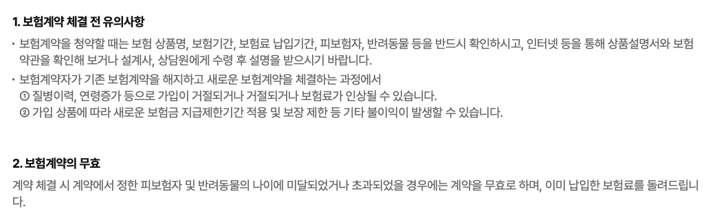 펫보험 가입시 주의사항