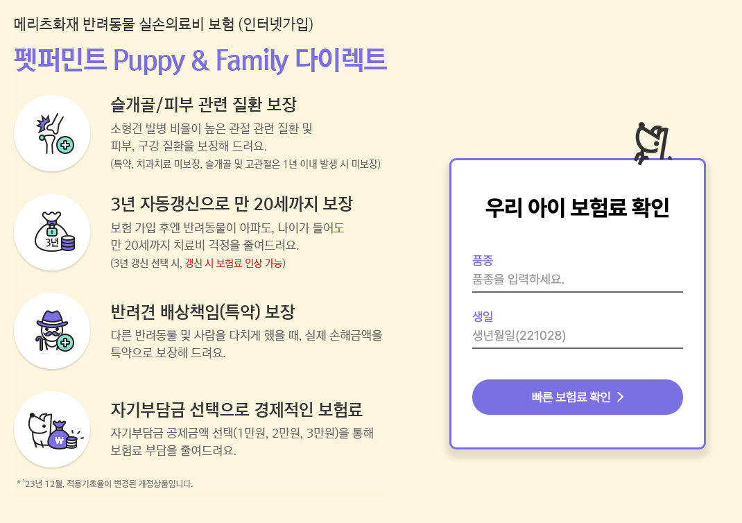 메리츠화재 펫보험 펫퍼민트 보장내용 및 보험료 조회방법
