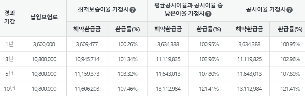 해약환급금 예시