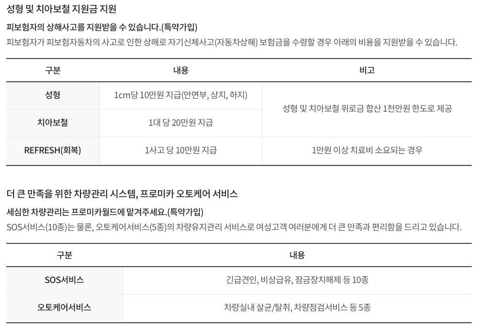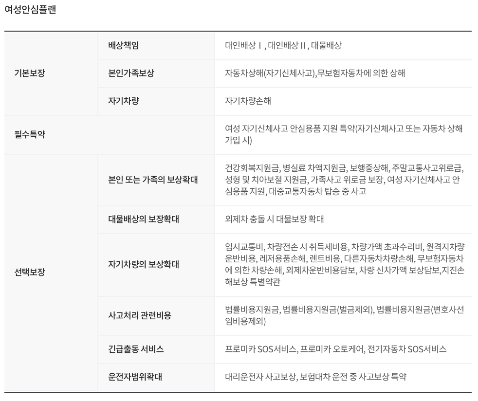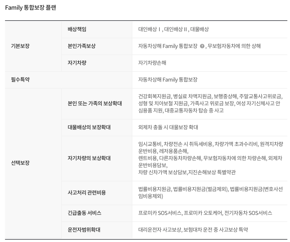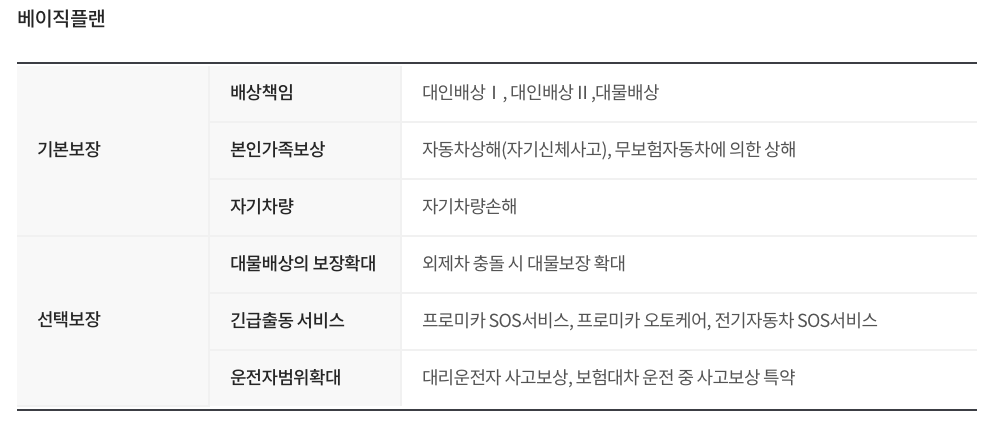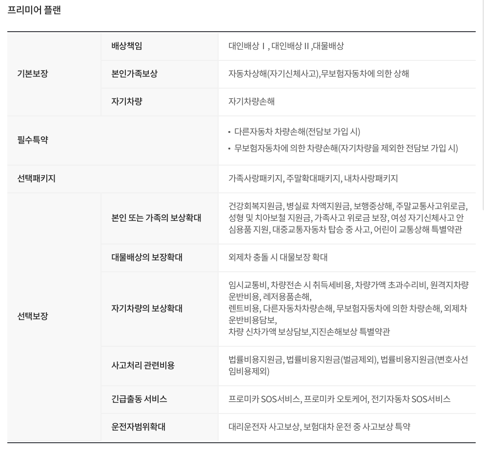DB손해보험 프로미카 자동차보험 보장 범위 및 보장 금액