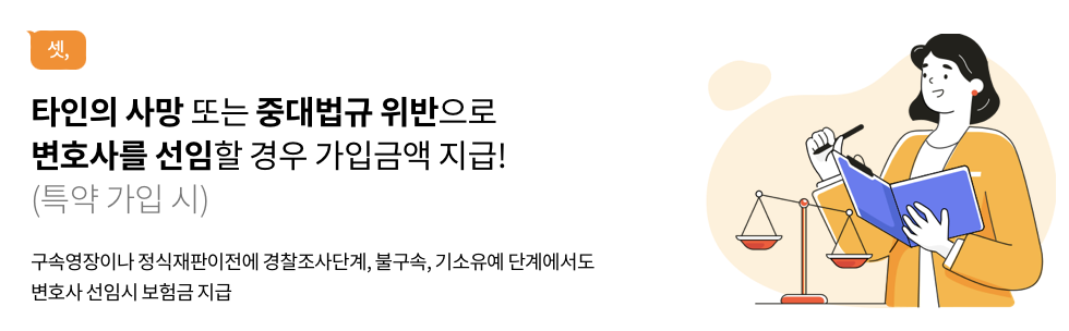 - 운전자 변호사 선임비용: 자동차사고로 인해 운전자가 형사소송을 진행해야 할 경우, 변호사 선임비용을 보장합니다.