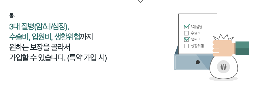 - 건강보험과 생명보험을 한 번에 가입할 수 있어서 보장 범위가 넓습니다.