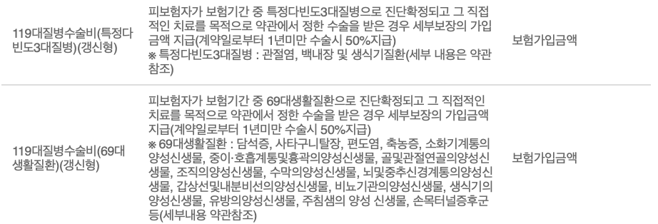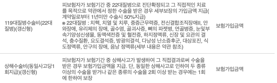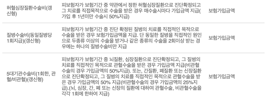 - 암수술비, 유사암수술비, 상해수술비, 질병수술비 등 다양한 수술비를 보장합니다. 유사암수술비는 유사암으로 인한 수술을 말합니다.