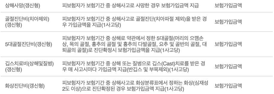 - 골절진단비를 보장합니다. 치아는 제외됩니다.