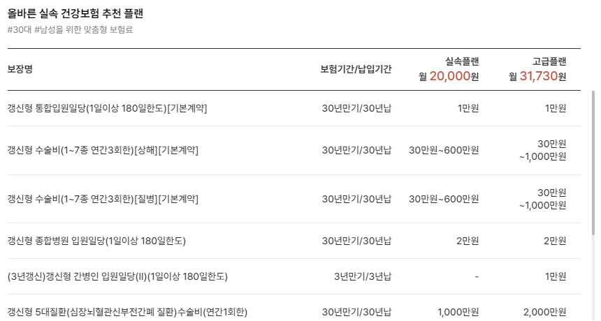 - 이 계약의 보험기간은 10, 15, 20, 25, 30년 만기로, 최초 가입 후 보험기간마다 갱신을 통해 최대 100세까지 보장받을 수 있습니다.