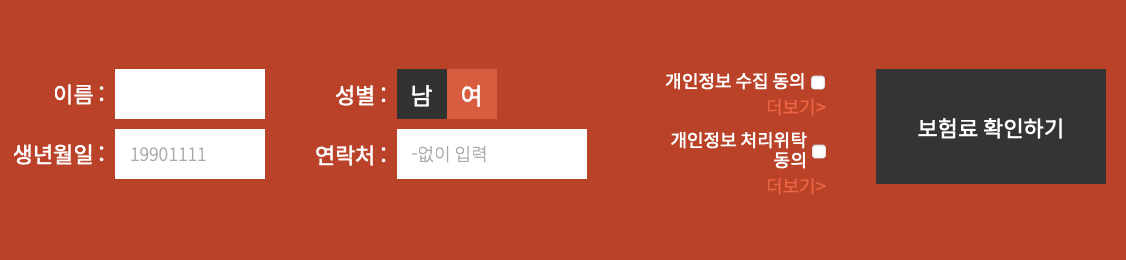 보험료 조회 시에는 다음과 같은 정보를 입력해야 합니다.