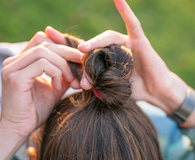 매듭짓기는 긴 머리카락을 정돈하는 간단한 방법입니다. 하지만 너무 꽉 조여서 매듭짓으면 두피에 압력을 가하고, 혈액 순환을 방해할 수 있습니다. 이는 두피와 머리카락의 건강에 좋지 않으므로, 매듭짓는 힘은 적당히 조절하는 것이 좋습니다. 또한 매듭짓는 부위를 자주 바꾸거나, 가급적 풀어주는 것도 좋습니다.
