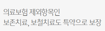 | 영구치보철치료비(상해 및 질병)[20년 갱신형] | 보장개시일 이후 상해 또는 치아관련 질병을 직접적인 원인으로 치아보철치료를 진단확정받고, 그 치료의 목적으로 영구치를 발거한 후 발거한 부위에 보철치료를 받은 경우 |