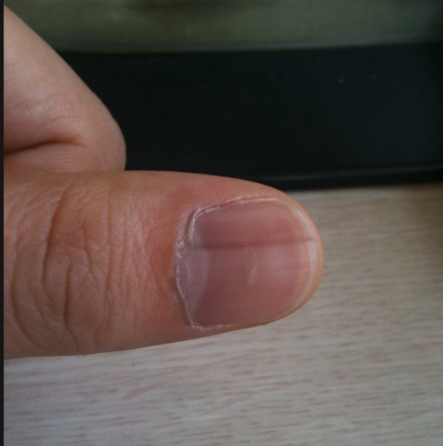 이는 손톱 밑 선상출혈로 인하여 검은 줄이 생기는 것인데 만약 숨 가쁨, 발열, 창백한 안색과 손톱에 검은 세로줄까지