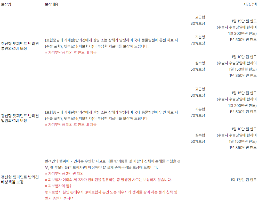 - 반려동물의 정상적인 임신, 출산, 제왕절개, 인공 유산과 관련된 비용 및 출산 후 증상 치료 비용