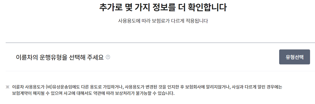 운행 유형을 선택하셔야 합니다. 꼭 정확히 입력해야 합니다.
