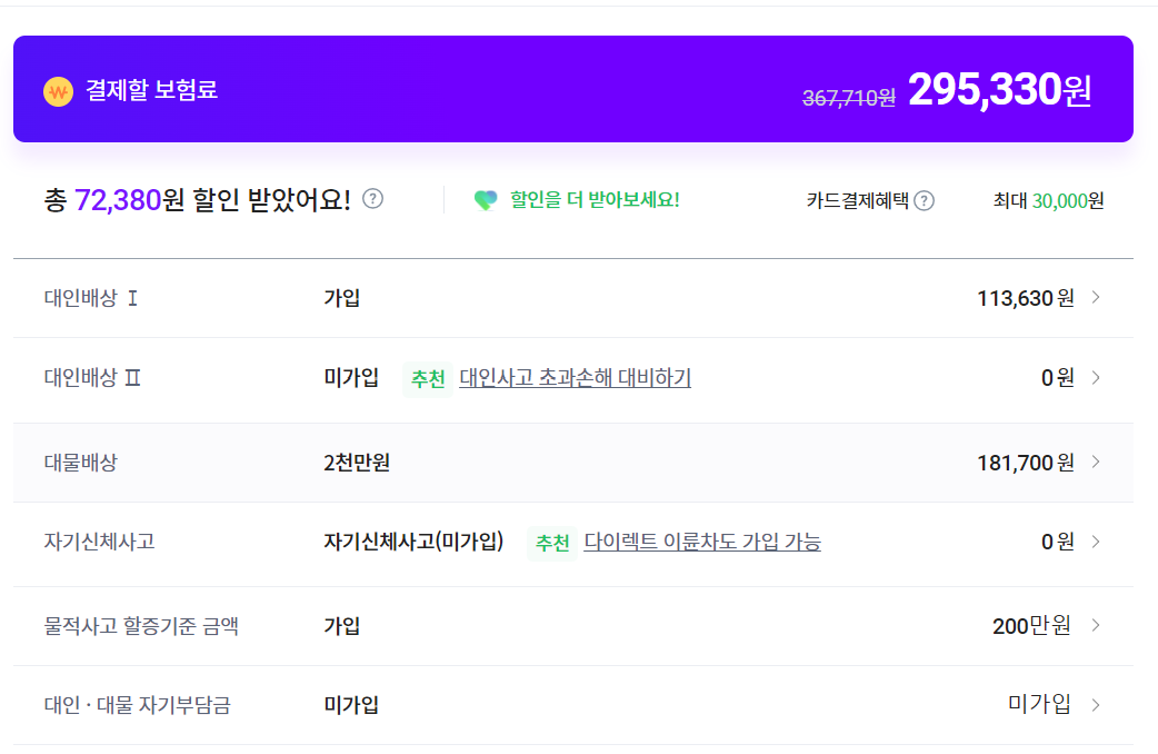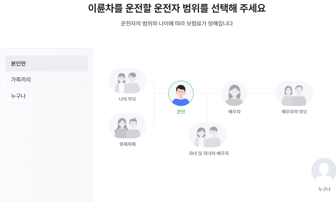운전자 범위를 정합니다. 그리고 보험료 계산을 누르면 다음과 같이 보험료가 계산됩니다.