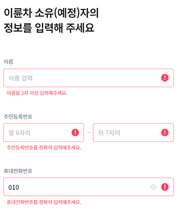 이름, 주민번호, 휴대전화번호를 입력합니다.