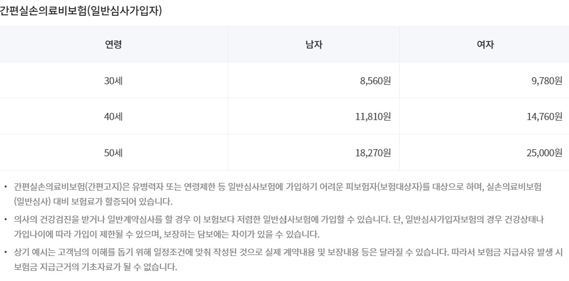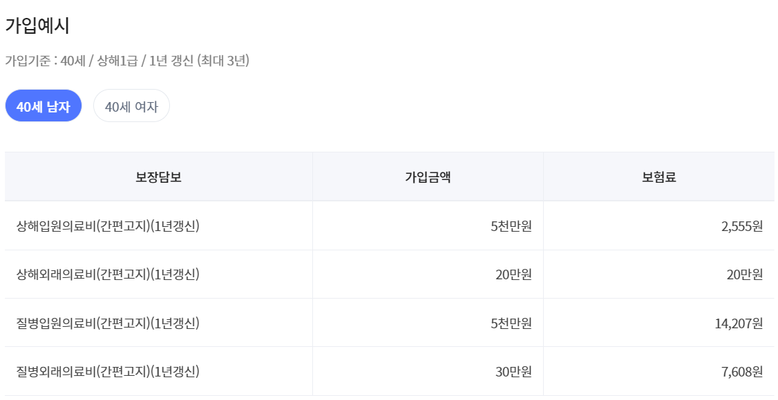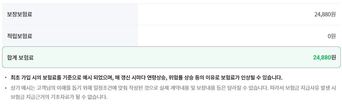 보험료는 사람마다, 보장마다 다르므로 직접 조회해보시기 바랍니다.