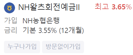 이 상품은 누구나 방문 없이 가입이 가능한 상품으로 기본금리가 최고금리인 상품입니다.