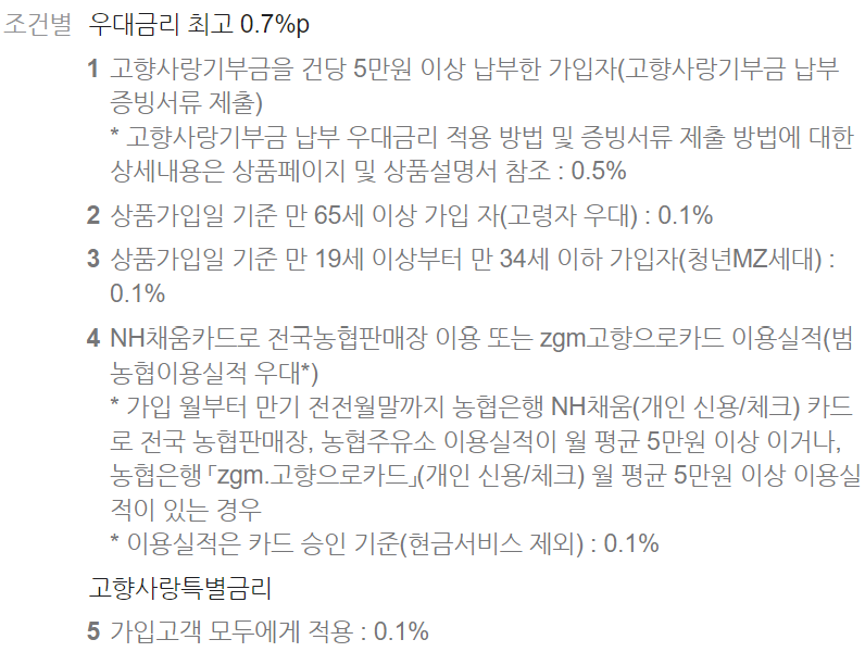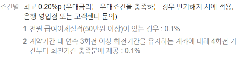 이 상품 우대대금리는 최대 0.7%를 제공하며 아래와 같습니다.