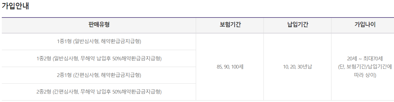 주1) 담보별로 가입가능 보험기간, 납입기간 및 가입가능나이가 다를 수 있습니다. 자세한 내용은 반드시 사업방법서 별지 및 약관을 참고하시기 바랍니다.