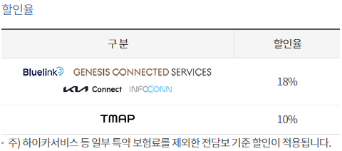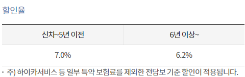 - 하이카서비스 등 일부 특약 보험료를 제외한 전담보 기준 할인이 적용됩니다.