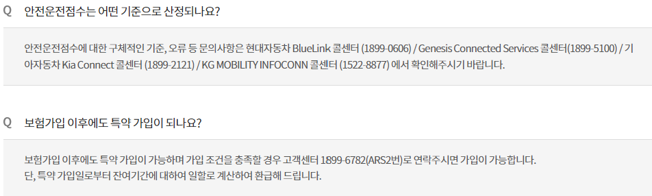 - 커넥티드서비스 가입자 : 안전운전점수 70점 이상 (직전 90일 운행기록 기준, 주행거리 1,000km 이상)