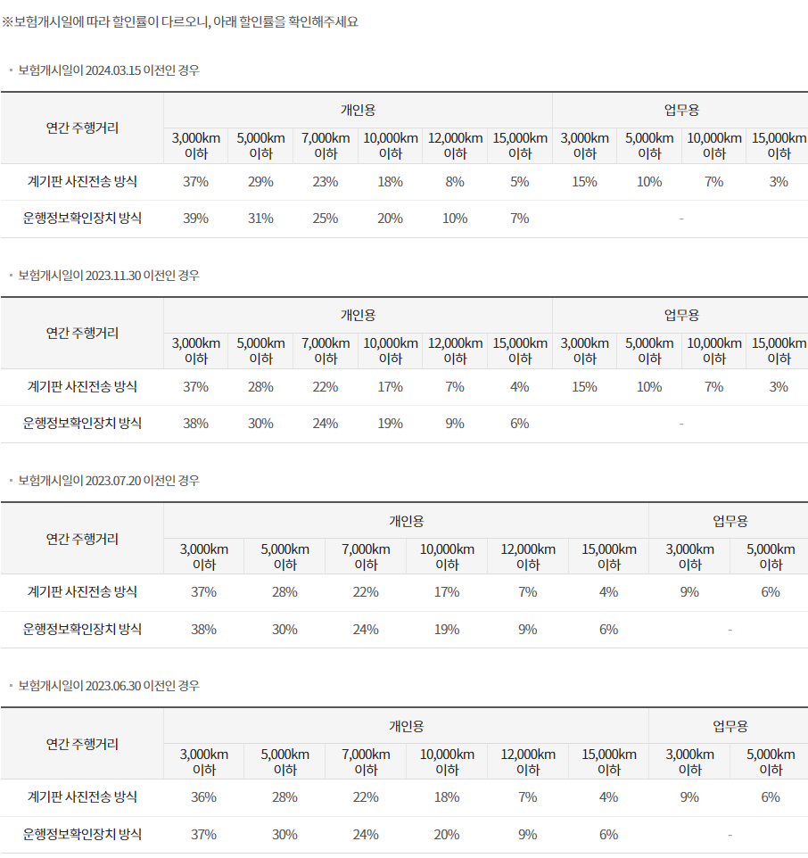 - 연간 환산 주행거리 15,000km 이하로 운행하시는 경우 만기 시 보험료를 환급해드리며, 초과하여 운행하시더라도 불이익이 없습니다.