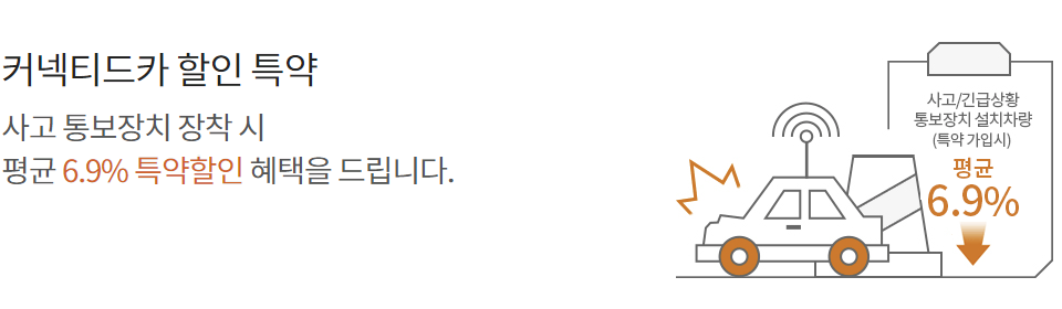 - 커넥티드카(사고 통보장치 장착)에 대하여 특약할인 혜택을 드립니다.