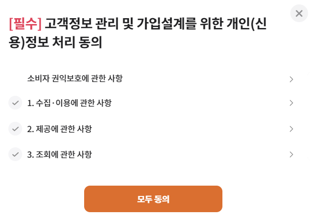 보험료 조회를 위한 필수 개인 정보 이용에 동의를 합니다.
