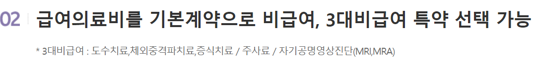 - 주3) 3대비급여란 도수치료,체외중격파치료,증식치료 / 주사료 / 자기공명영상진단(MRI,MRA) 를 말합니다.