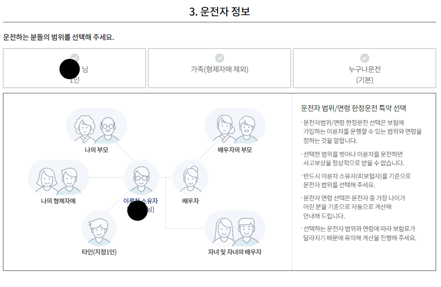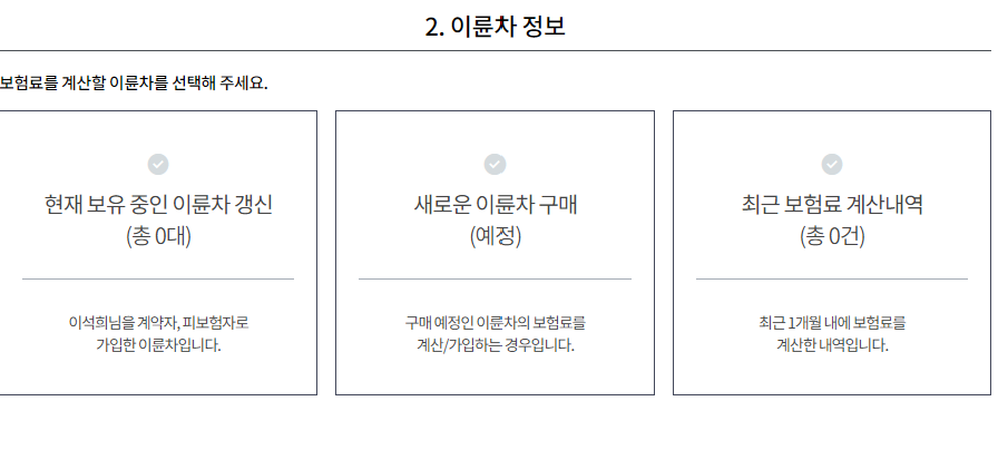 운전자 정보를 입력합니다. 그러면 바로 아래와 같이 보험료가 계산됩니다.