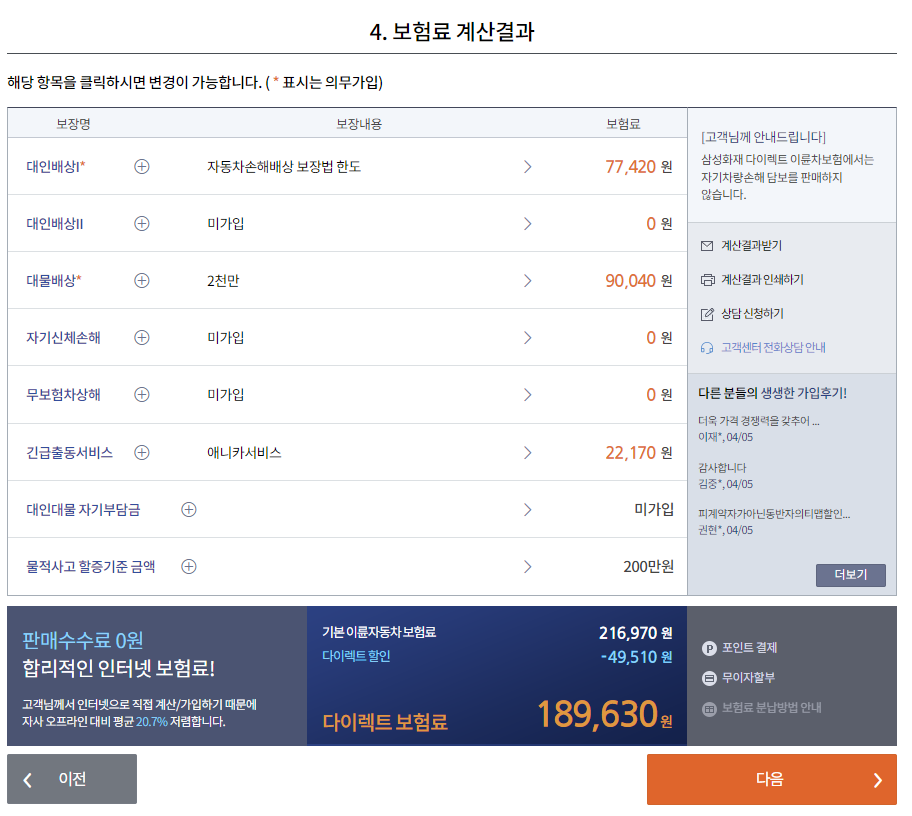 보험료 계산은 간단하게 가능합니다.