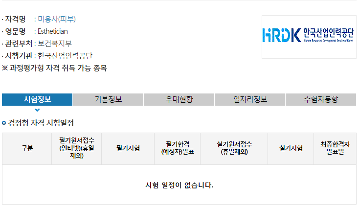 미용사 피부 자격증 시험일정 및 시험과목