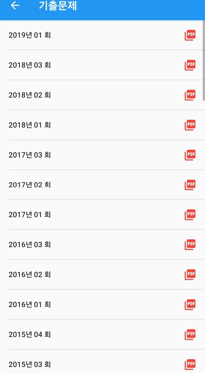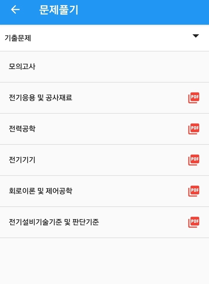 이 어플을 이용하여 연도별 필기 기출문제 및 모의고사 등 여러 유형의 문제를 풀 수 있고 오답 확인도 가능합니다.