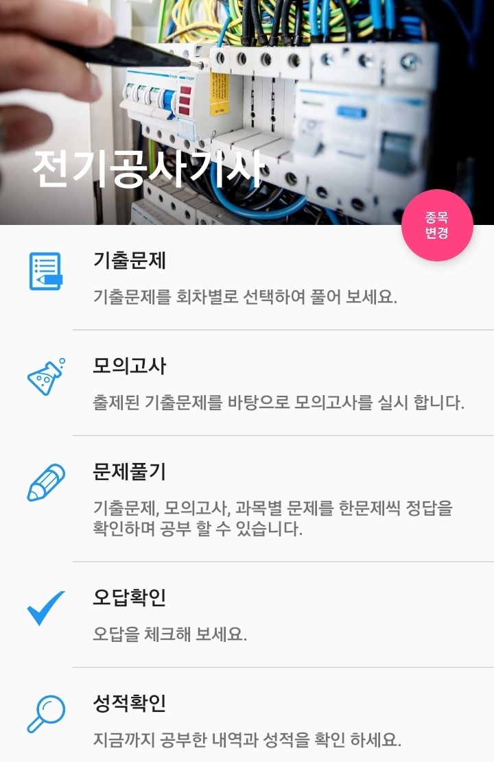 미용사 부터 조주 기능사까지 100여개 이상의 자격증을 공부해 보세요!!! 공무원시험 기출문제도 공부 할 수 있습니다.