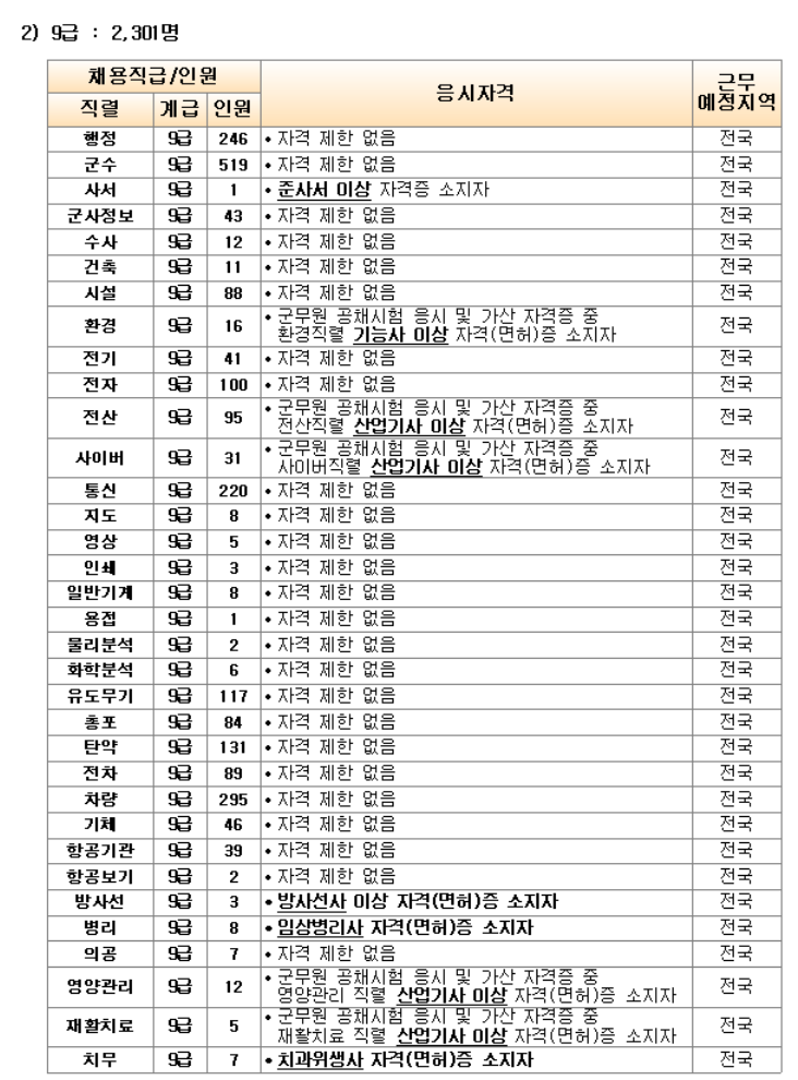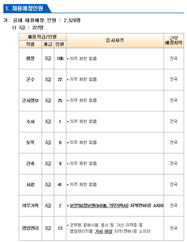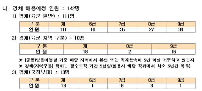 육군 군무원 채용인원