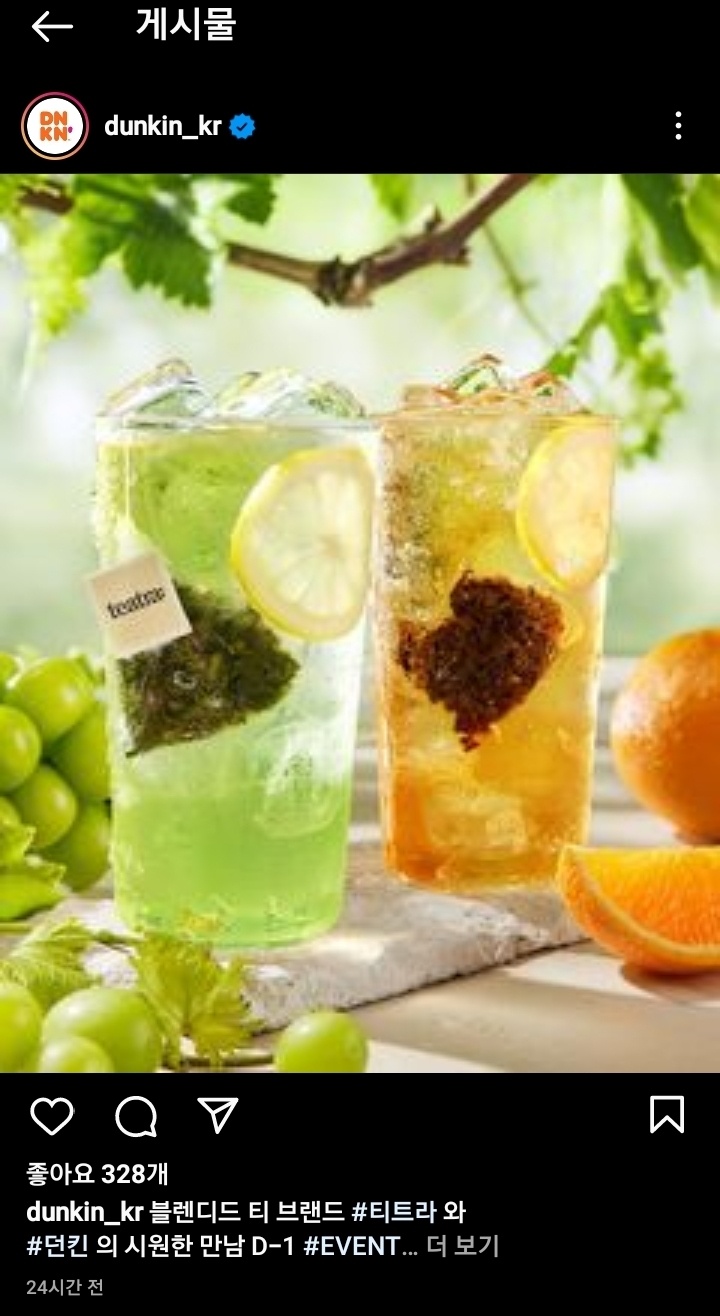 던킨을 예로 들면 위에 dunkin_kr 이게 계정아이디 입니다. 아이디는 사람마다 다르겠지만 프로필 사진 오른쪽에 있습니다.