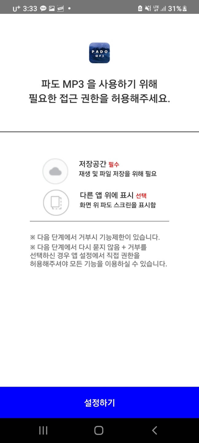 액세스 허용을 눌러주세요 만일 거부한다면 어플을 사용하지 못해요! 다운로드하는 거 허용!