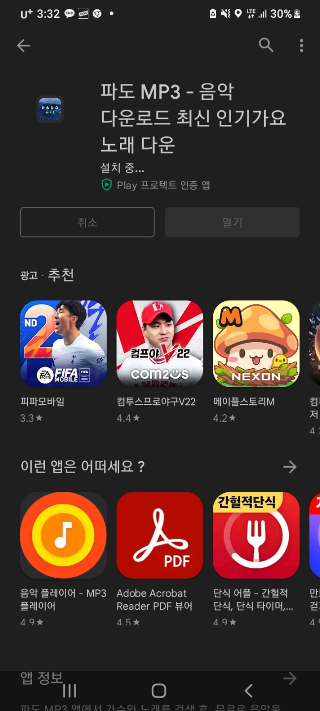 첫 번째, 무료 음악다운 어플 파도 mp3