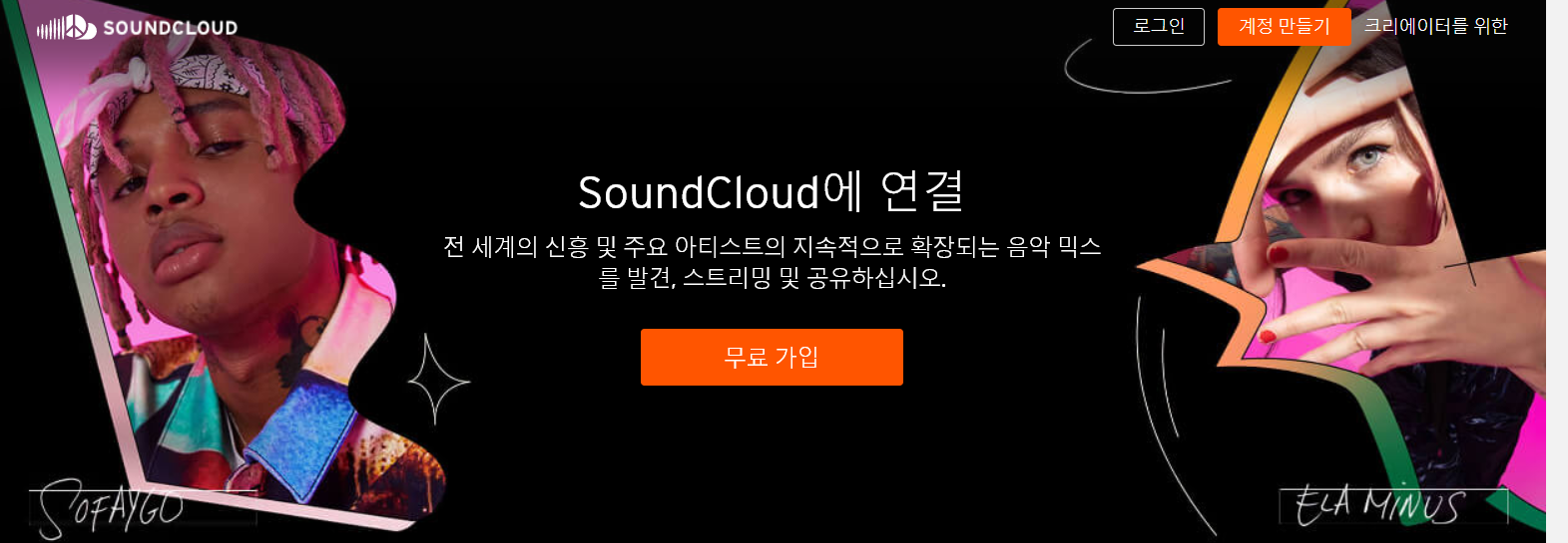 사운드 클라우드는 대부분 사람들이 알 정도로 유명한 사이트입니다. 검색창의 원하는 노래만 쳐도 바로 나오며,