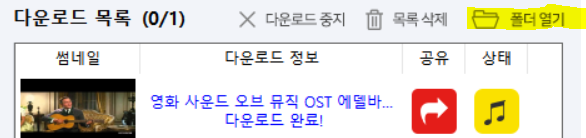 다운로드를 완료하셨으면 폴더 열기를 눌러들으시면 끝!