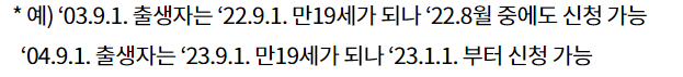 만일 만 19세 이하라면 나이가 되는 해인 2023년 1월 1일에도 신청이 가능합니다.