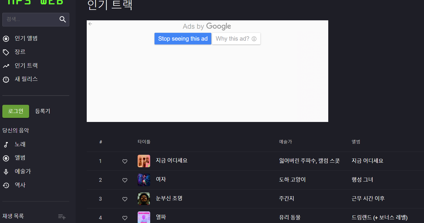 이 웹사이트는 국내뿐 아니라 해외 아티스트 음원과 인기곡 제공으로 실시간으로 들을 수 있습니다.