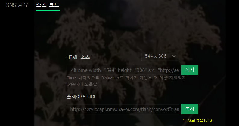 "복사되었습니다"라고 메시지가 나옵니다.