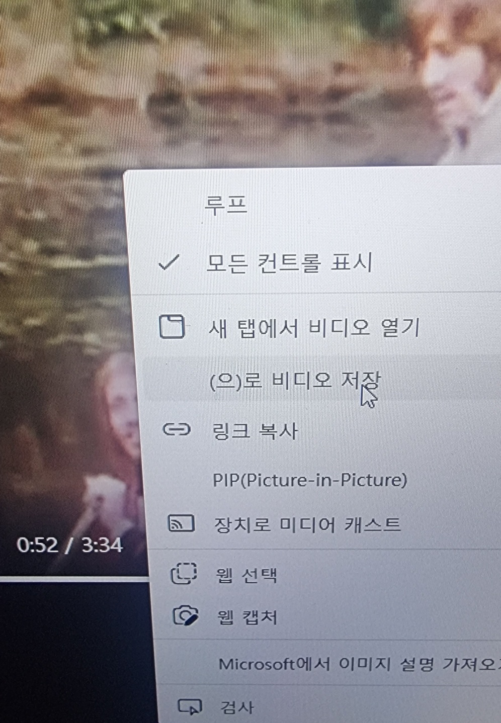 영상에 마우스를 대고 마우스 오른쪽 버튼을 갖다 대면 저장하기가 뜹니다.