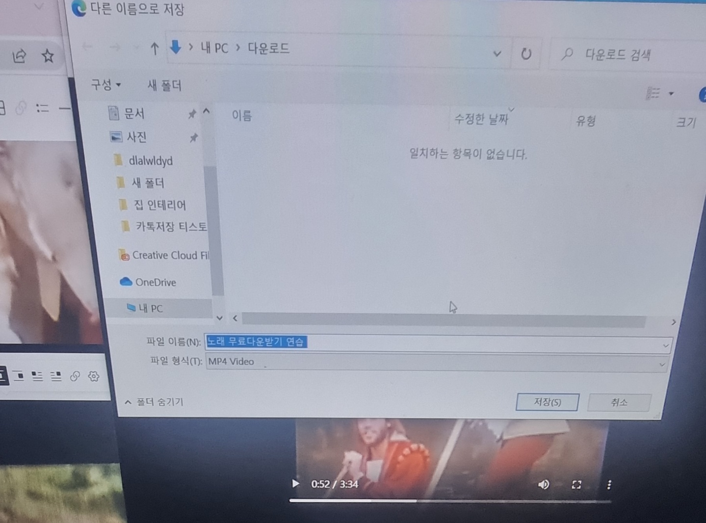 다운로드 버튼을 누르면 다운로드하으려는 영상이 뜨고