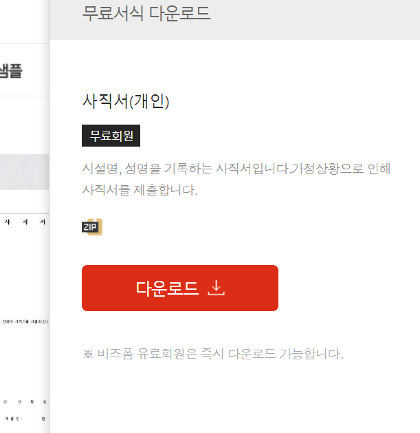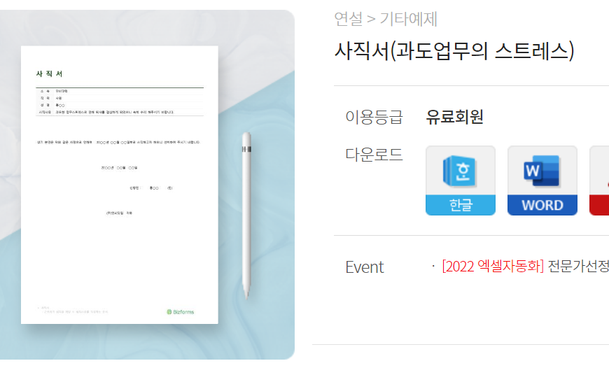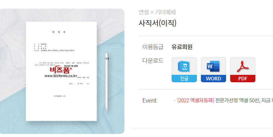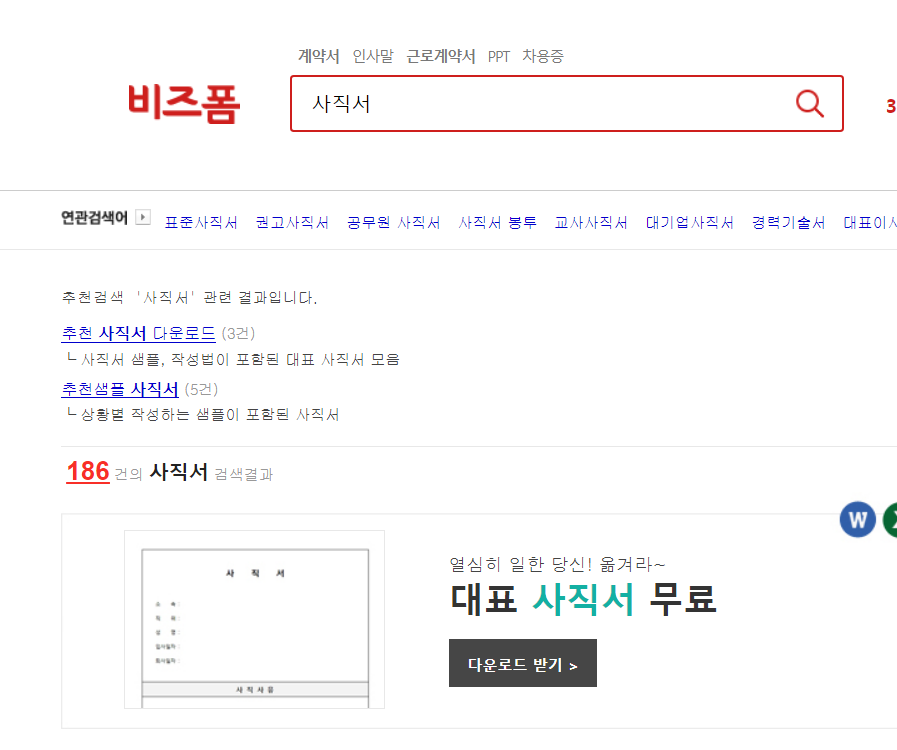 원하는 사직서 찾기 사이트 비즈폼.